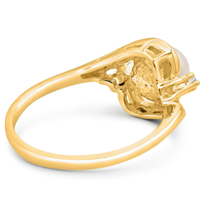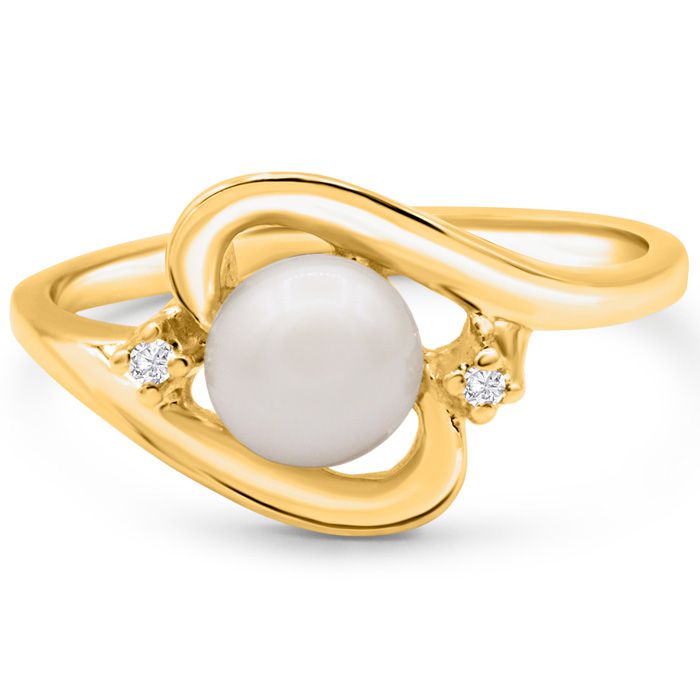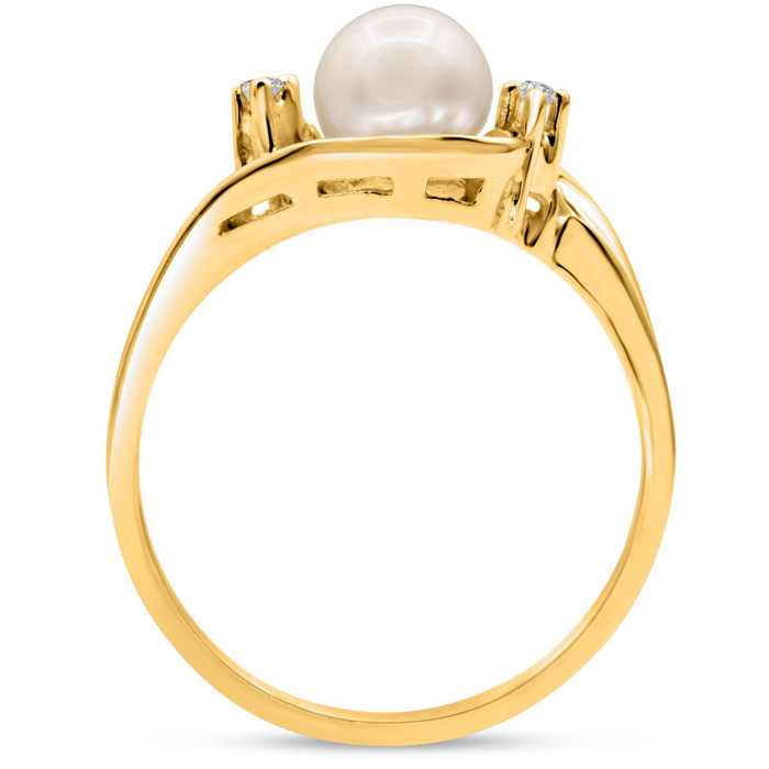 This ring features one 6mm freshwater cultured pearl. It has two diamond accents in I-J color, I2-I3 clarity at 0.02 carats total. This ring is in 14 karat yellow gold.