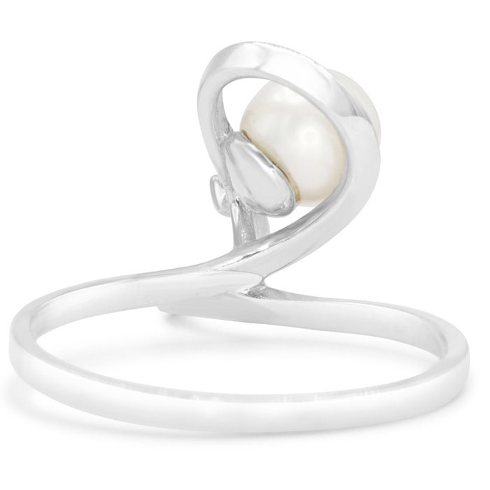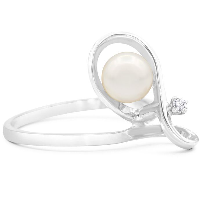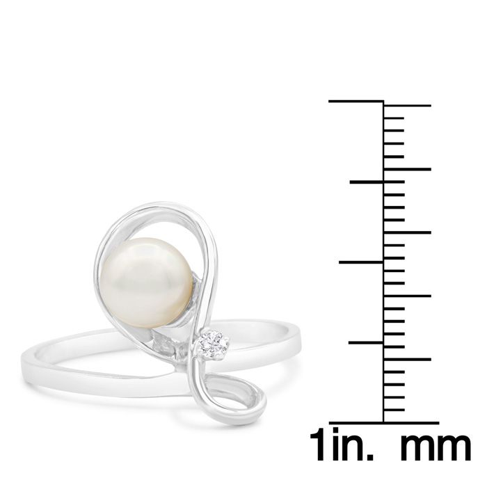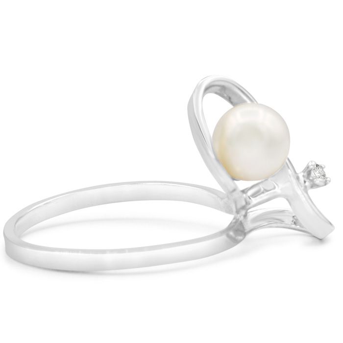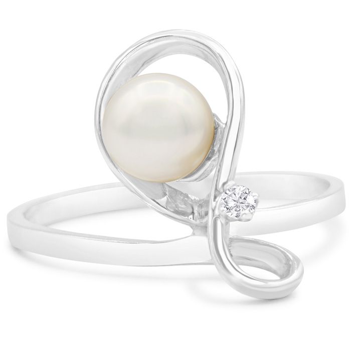Retrograde Birthstones™ Round Freshwater Cultured Pearl and Diamond Figure 8 Ring In 14 Karat White Gold