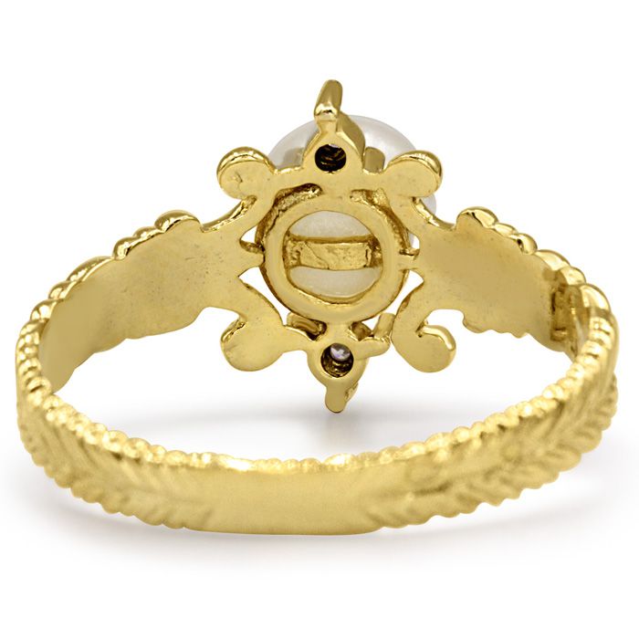 Round Freshwater Cultured Pearl and Diamond Ring In 14 Karat Yellow Gold