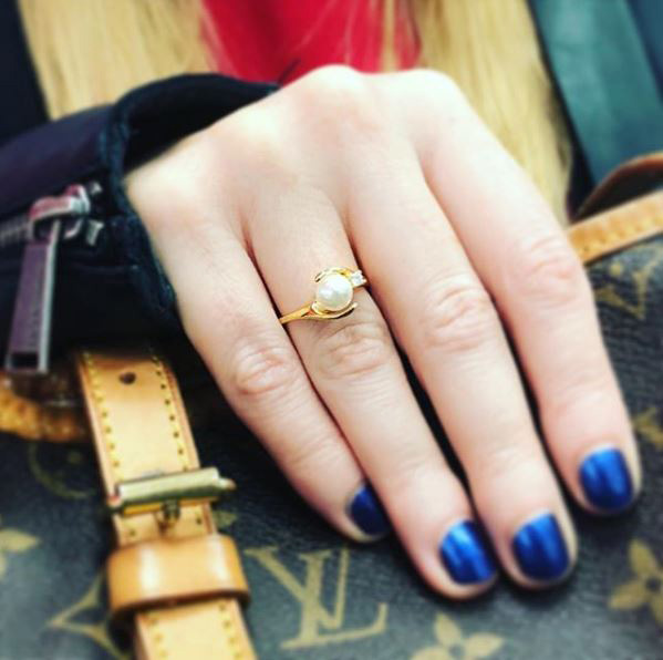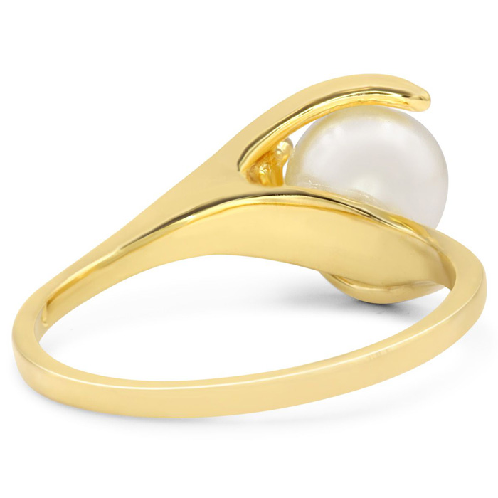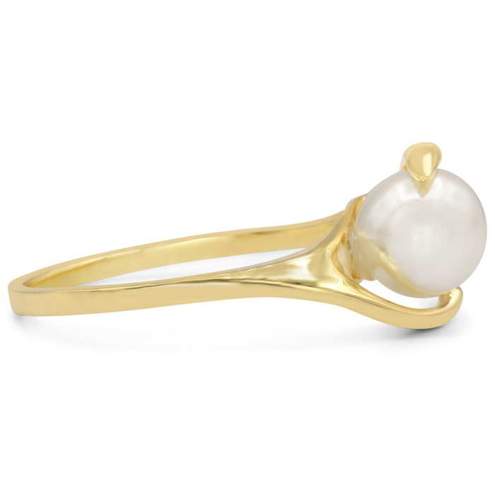 Round Freshwater Cultured Pearl and Diamond Ring In 14 Karat Yellow Gold