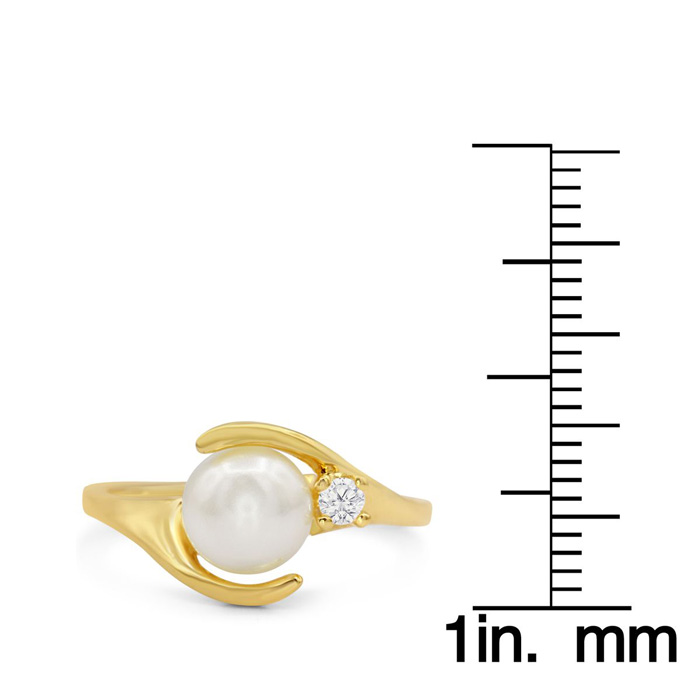 This ring features one 7mm freshwater cultured pearl. It has one diamond accent in I-J color, I2-I3 clarity at 0.03 carats total. This ring is in 14 karat yellow gold.