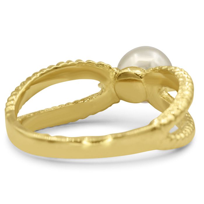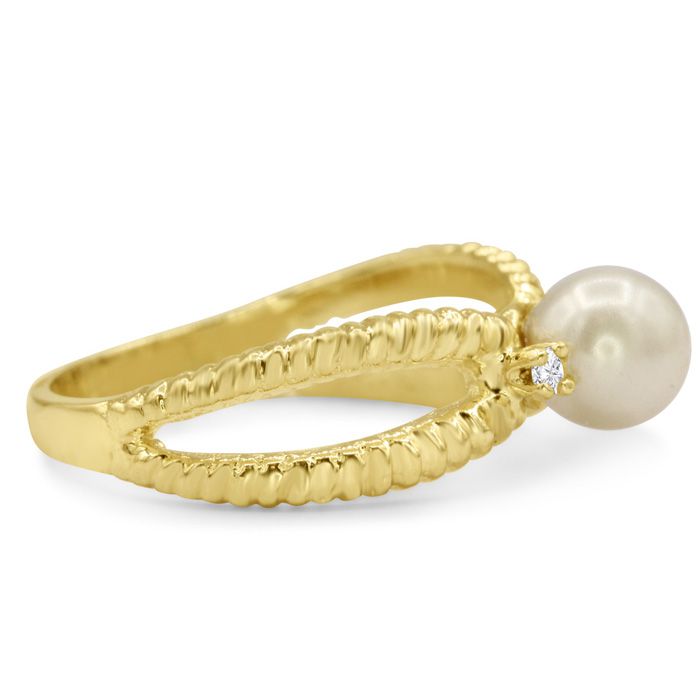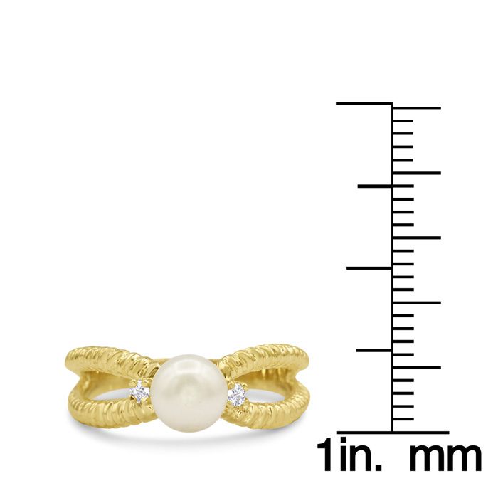 Round Freshwater Cultured Pearl and Diamond Split Shank Ring In 14 Karat Yellow Gold