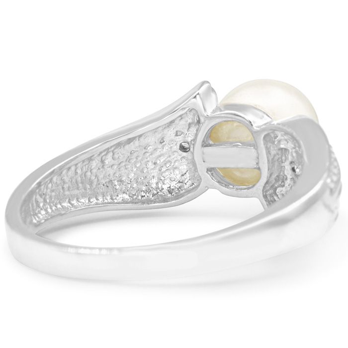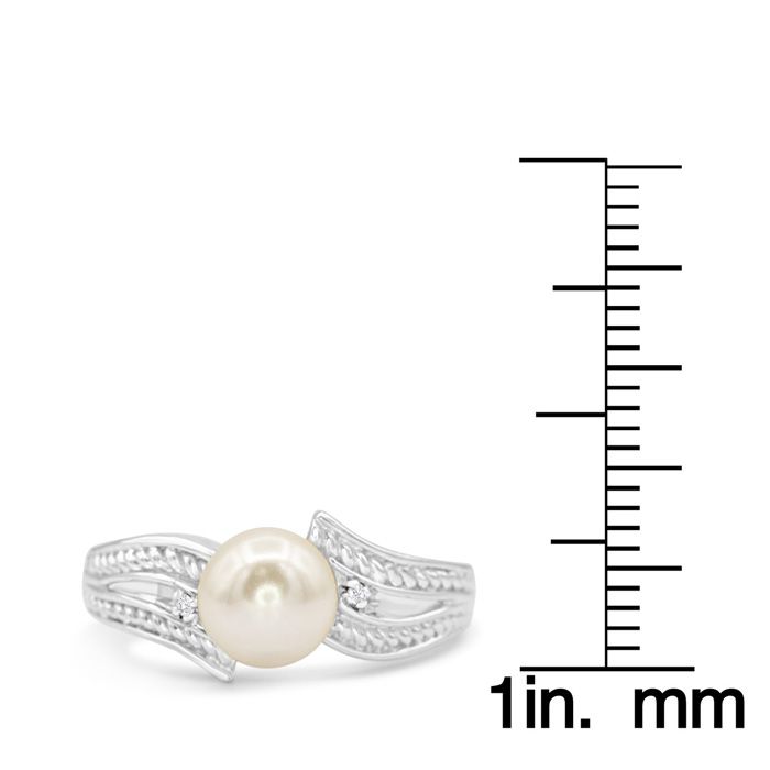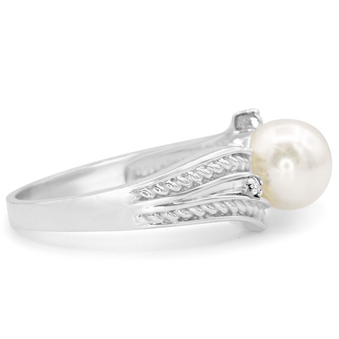 Retrograde Birthstones™ Round Freshwater Cultured Pearl and Diamond Vintage Ring In 14 Karat White Gold