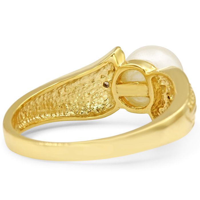 Round Freshwater Cultured Pearl and Diamond Vintage Ring In 14 Karat Yellow Gold