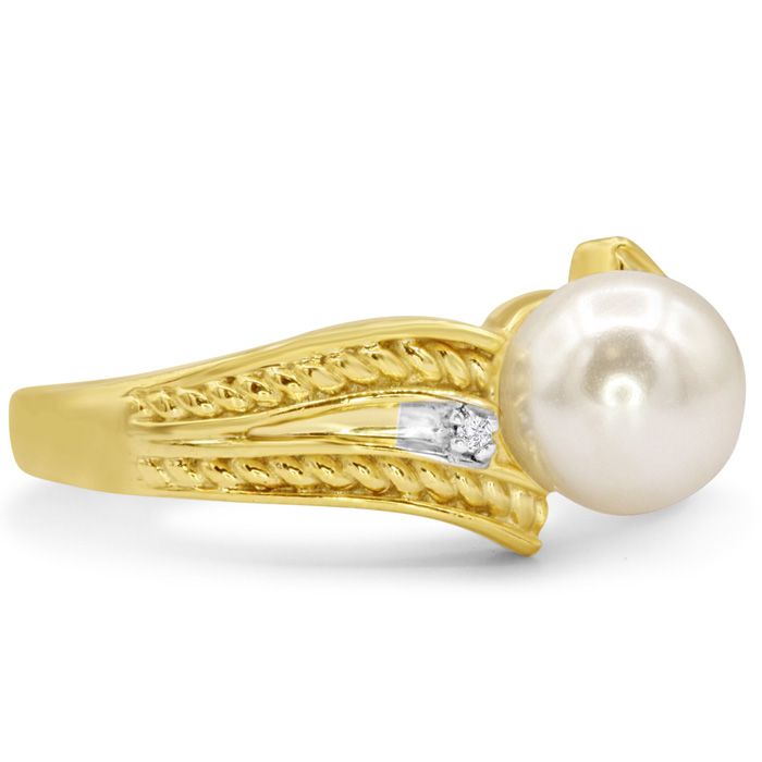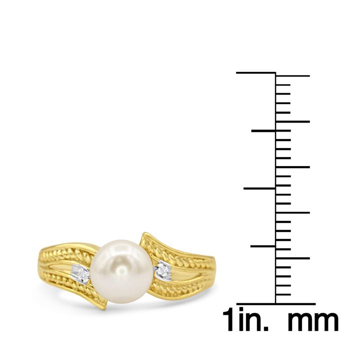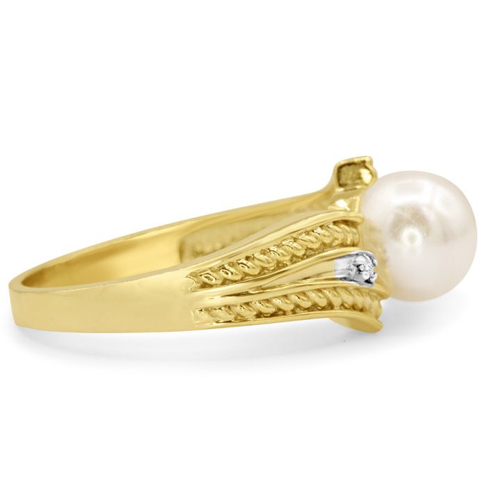Retrograde Birthstones™ Round Freshwater Cultured Pearl and Diamond Vintage Ring In 14 Karat Yellow Gold