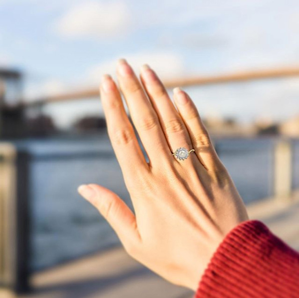 Round Freshwater Cultured Pearl and Halo Diamond Ring In 14 Karat Yellow Gold