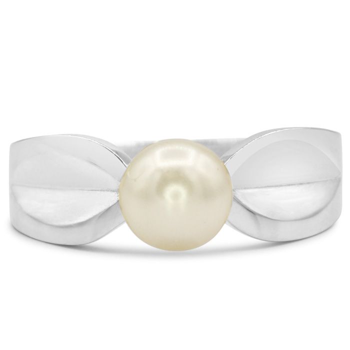This ring features one 6mm freshwater cultured pearl. This ring is in 14 karat white gold.