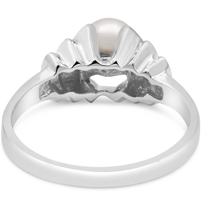 This ring features one 6mm freshwater cultured pearl. This ring is in 14 karat white gold.
