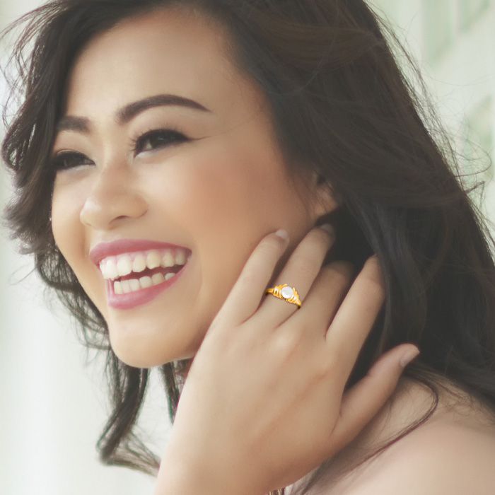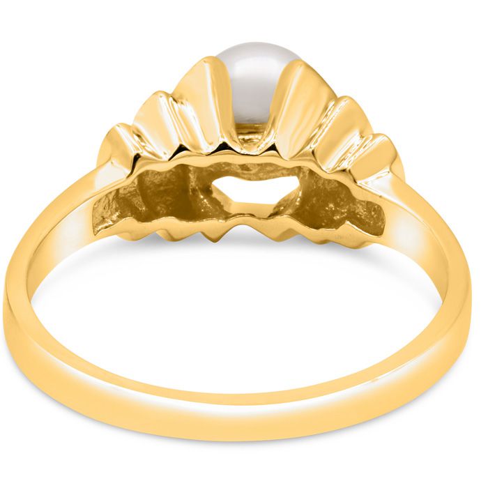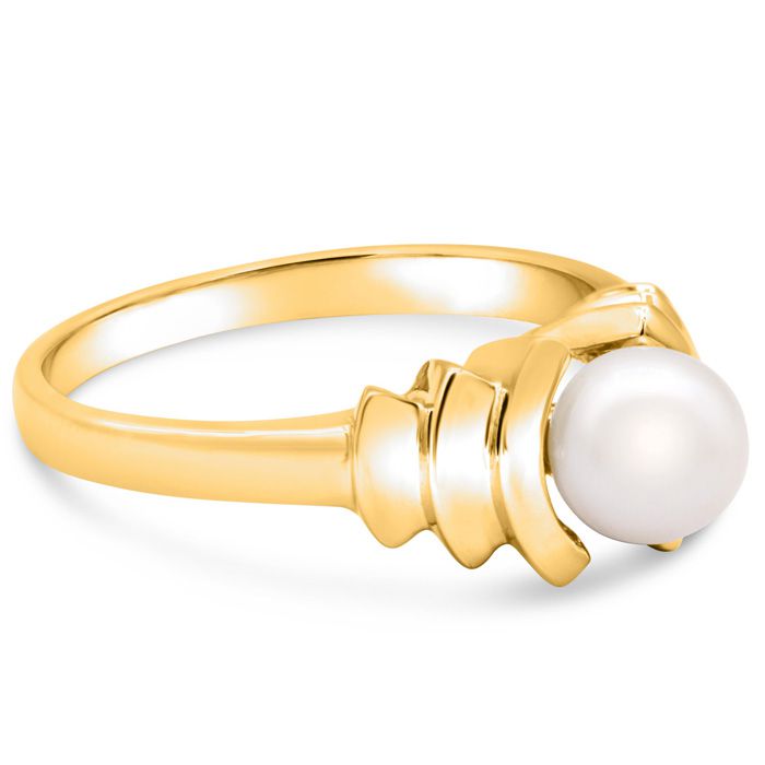 This ring features one 6mm freshwater cultured pearl. This ring is in 14 karat yellow gold.
