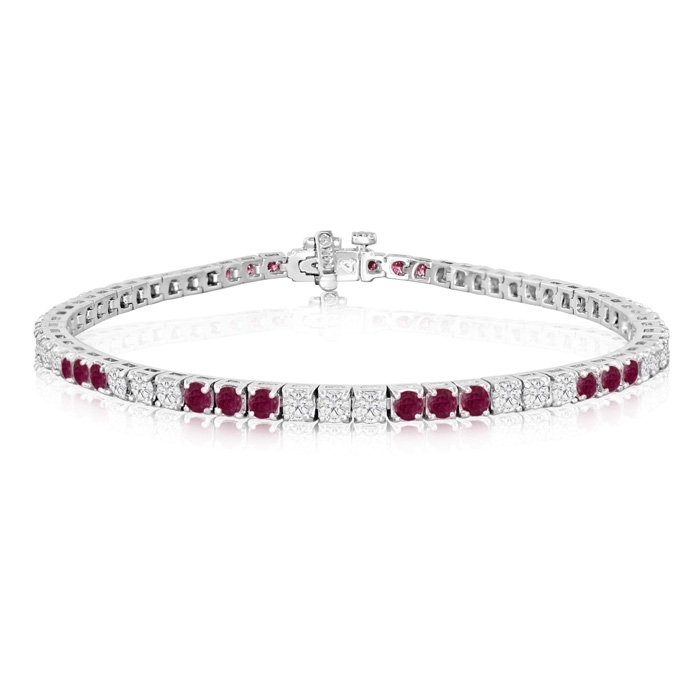 Who says you can't combine ruby jewelry and diamond tennis bracelets? This very fine 5 carat total gem weight ruby and diamond line style tennis bracelet is mounted in 14 karat white gold. Featuring 29 fine H/I color SI2 clarity diamonds and 30 top quality excellent rubies. It's not just fine gemstone jewelry, it's an heirloom.