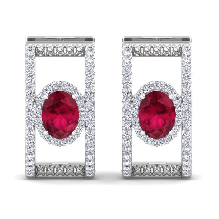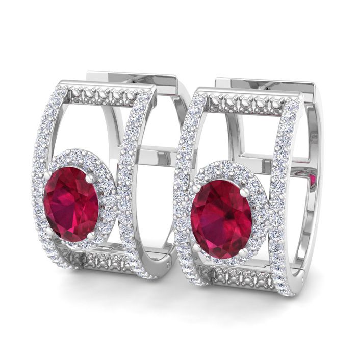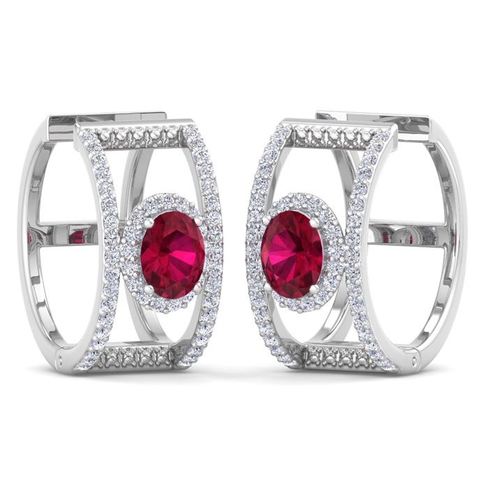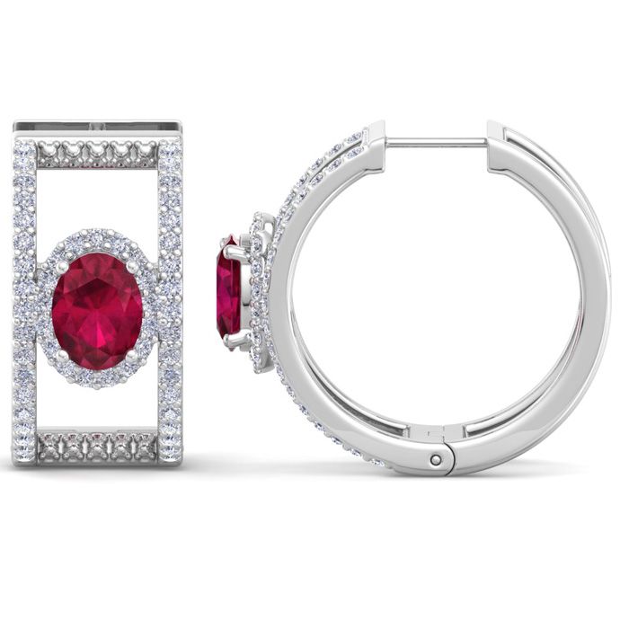 2 1/2 Carat Ruby and Lab Grown Diamond Hoop Earrings In 14 Karat White Gold