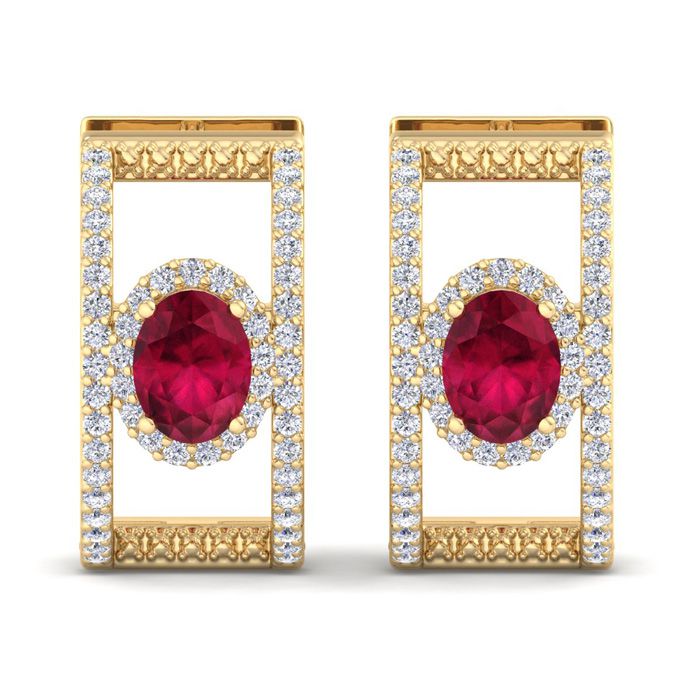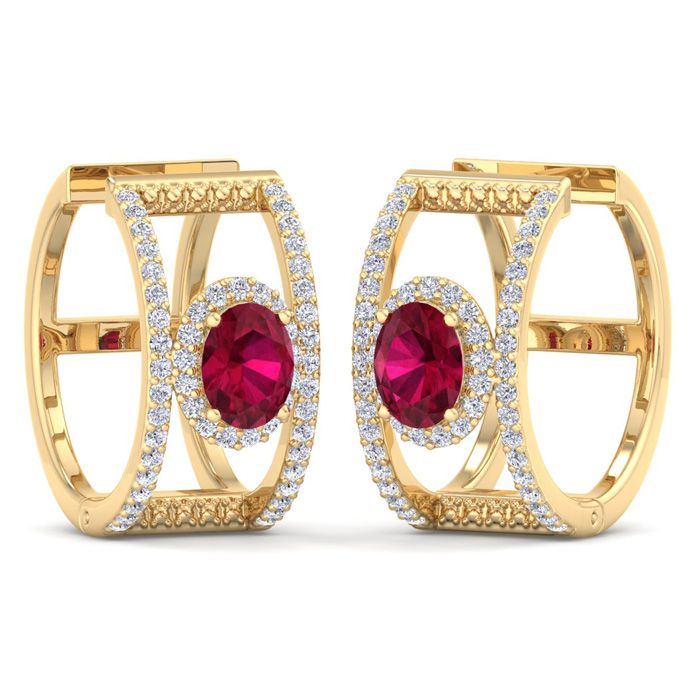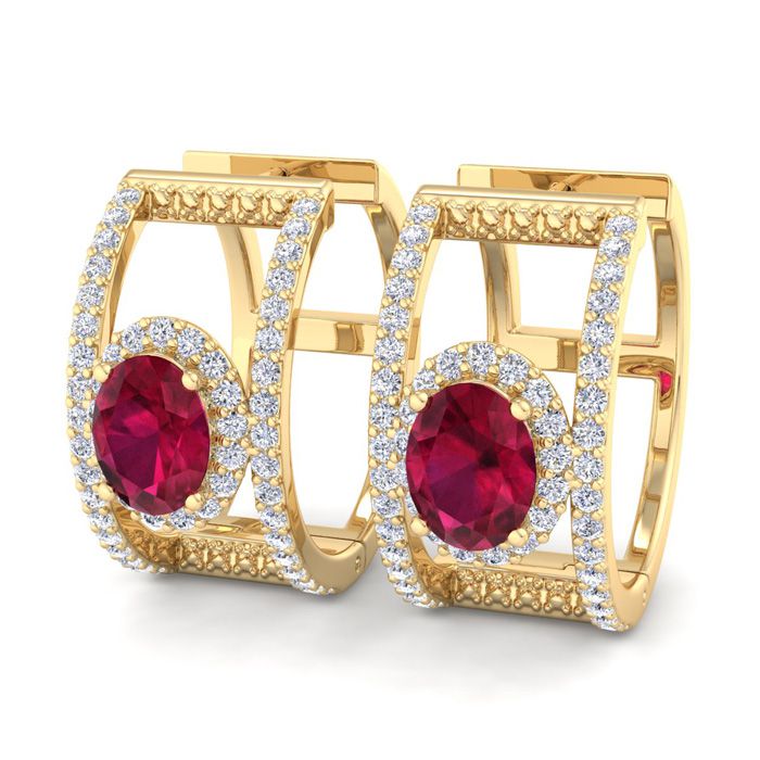 2 1/2 Carat Ruby and Lab Grown Diamond Hoop Earrings In 14 Karat Yellow Gold