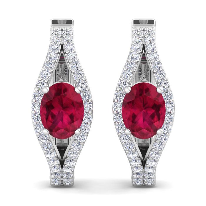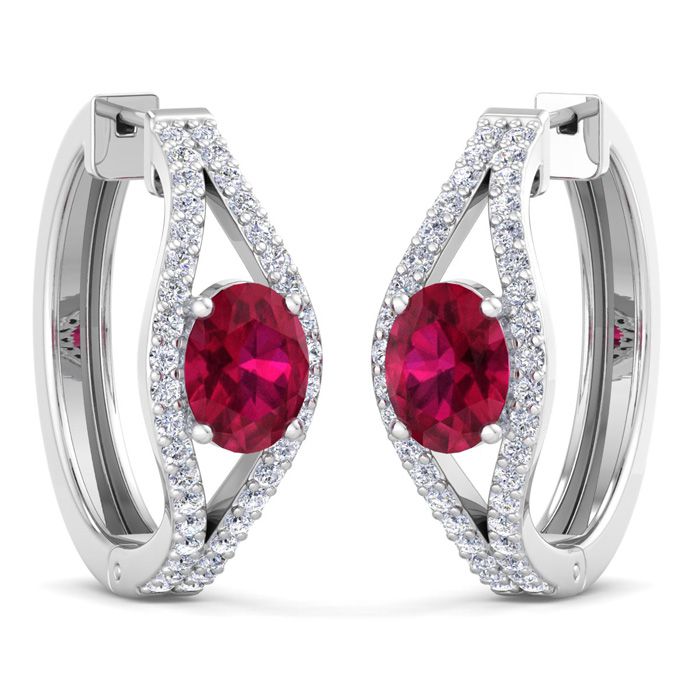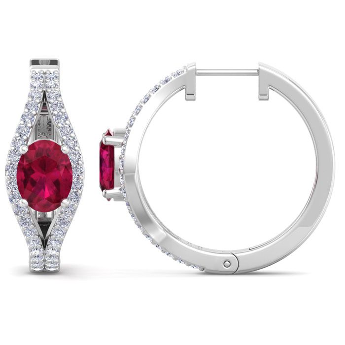 2 1/4 Carat Ruby and Lab Grown Diamond Hoop Earrings In 14 Karat White Gold