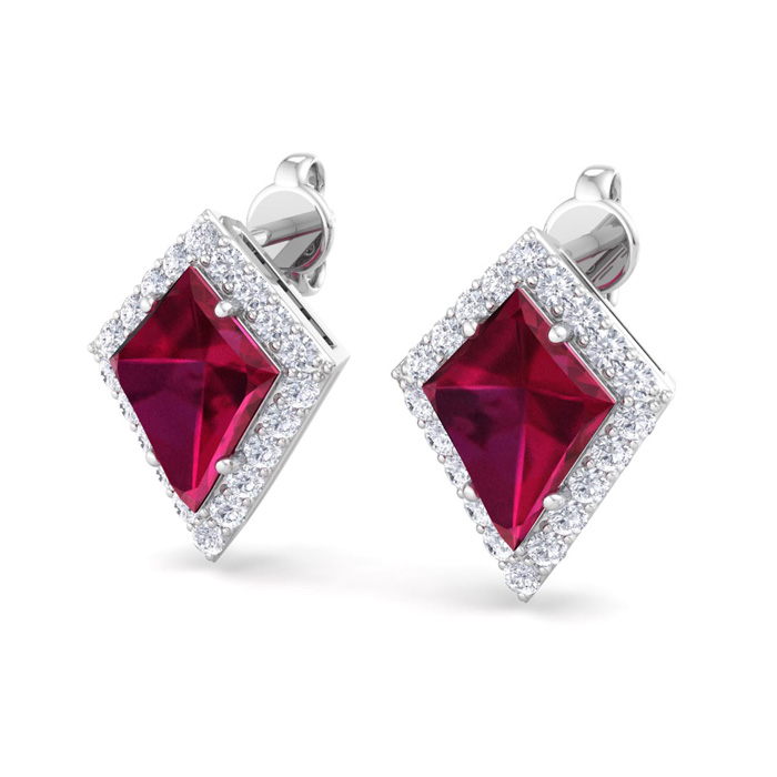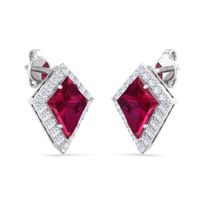 2 1/5 Carat Kite Shape Ruby and Diamond Earrings In 14K White Gold