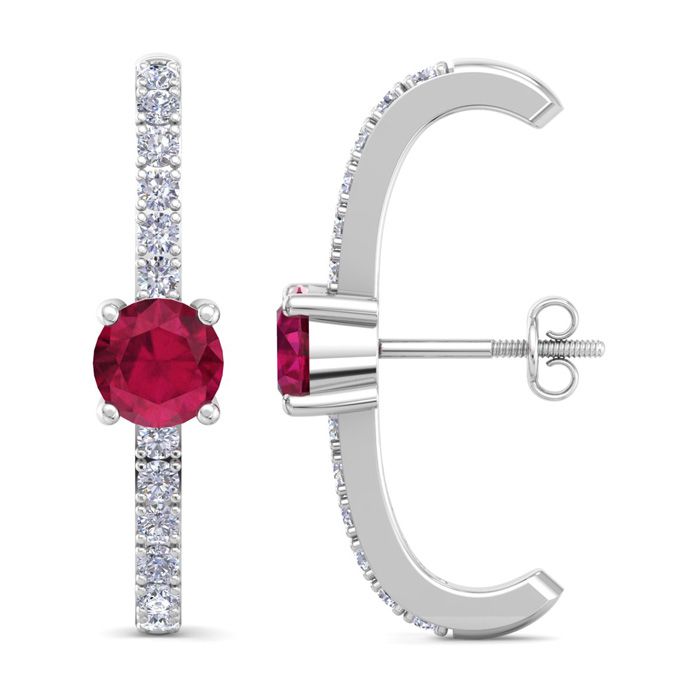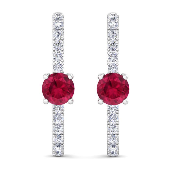 2 Carat Ruby and Lab Grown Diamond Hoop Earrings In 14 Karat White Gold, 1 Inch - Round