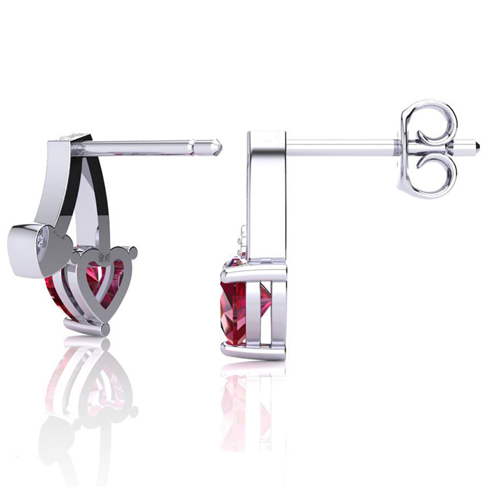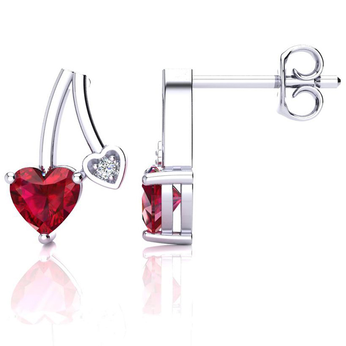 3/4 Carat Ruby and Diamond Heart Earrings In Sterling Silver