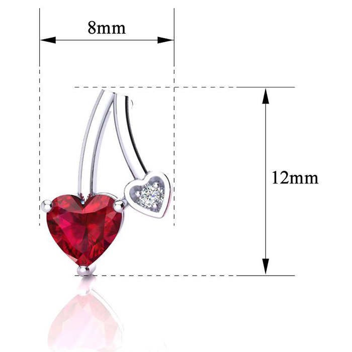 These stunning ruby earrings features two 5x5mm heart shape created ruby gemstones each weighing approximately 3/8 carat. It is surrounded by 2 sparkling diamonds in I-J color, I1-I2 clarity at 0.01 carats. Total carat weight is 3/4 carat. These earrings are crafted in sterling silver and have comfortable and secure post with friction backs.