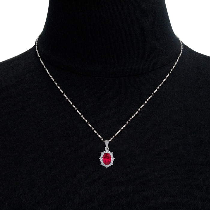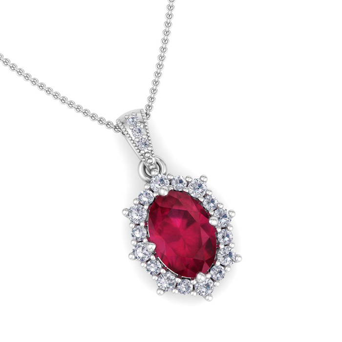 Retrograde Birthstones™ 1 3/4 Carat Oval Shape Ruby and Diamond Necklace In 14K White Gold
