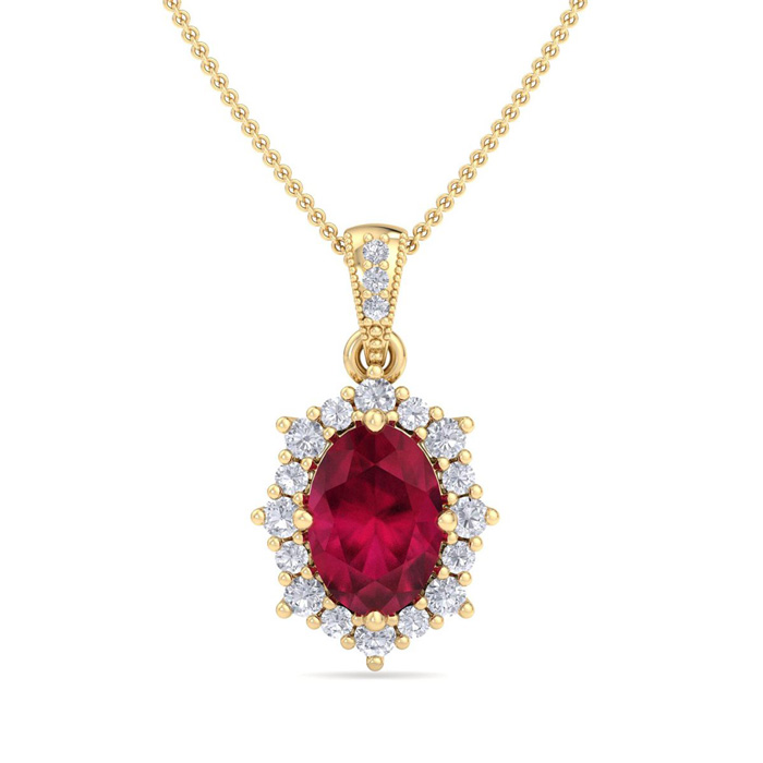 1 3/4 Carat Oval Shape Ruby and Diamond Necklace In 14K Yellow Gold
