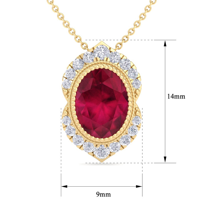 1 3/4 Carat Oval Shape Ruby and Diamond Necklace In 14K Yellow Gold