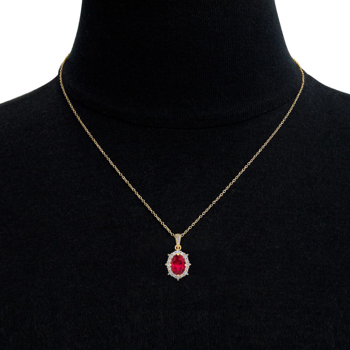 Retrograde Birthstones™ 1 3/4 Carat Oval Shape Ruby and Diamond Necklace In 14K Yellow Gold