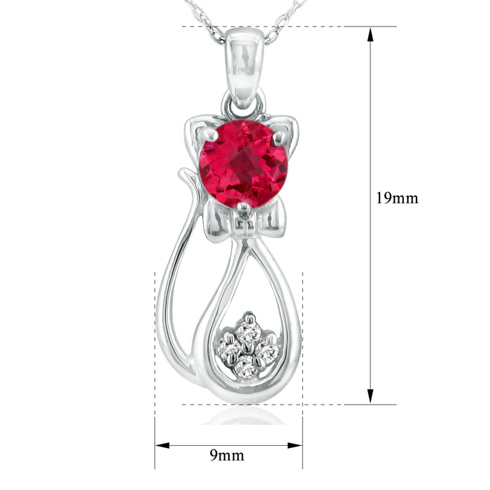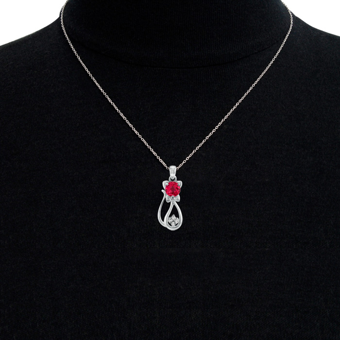 1 Carat Ruby and Diamond Cat Necklace In Sterling Silver With 18 Inch Chain