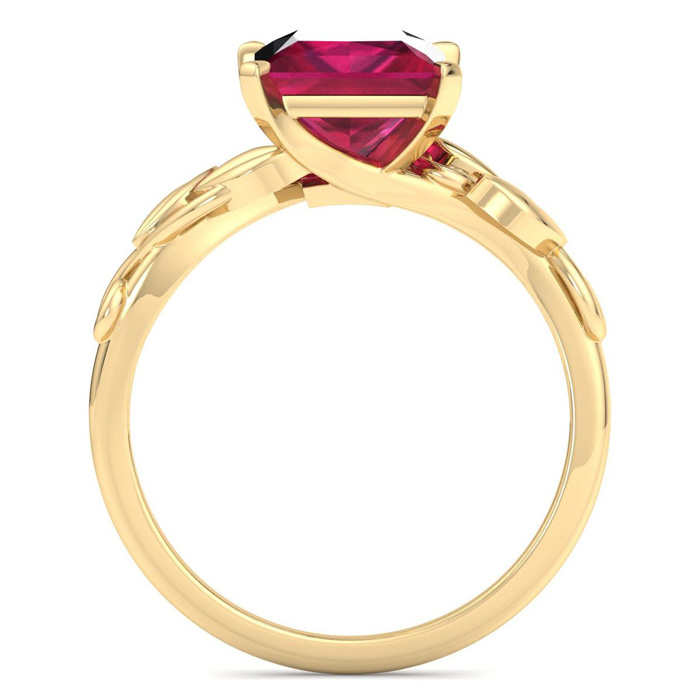Retrograde Birthstones™ 1 1/2 Carat Princess Shape Ruby Ornate Ring In 14K Yellow Gold