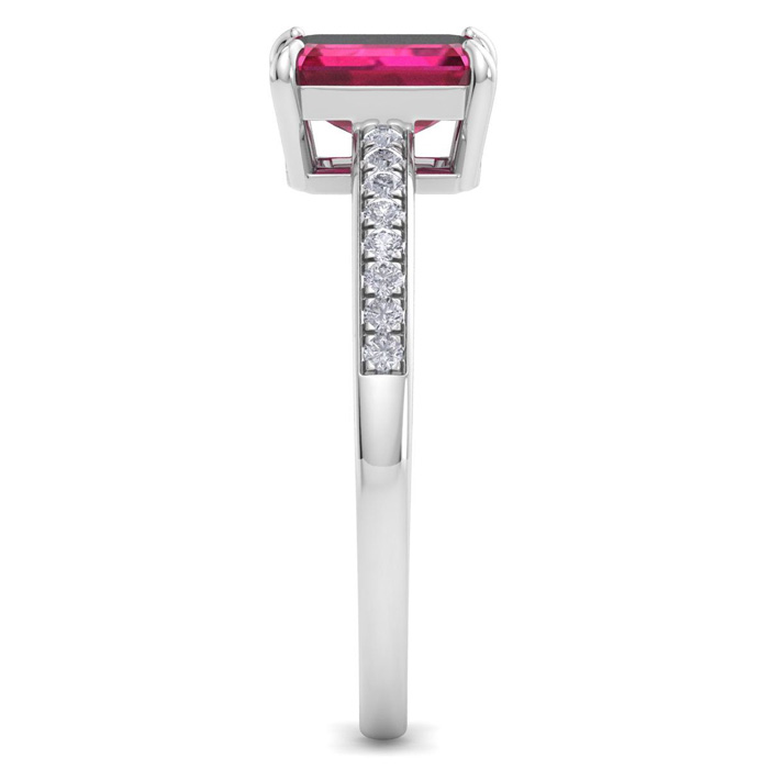 1 1/4 Carat Emerald Cut Ruby and Diamond Ring In 14K White Gold