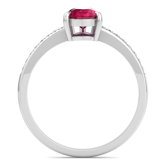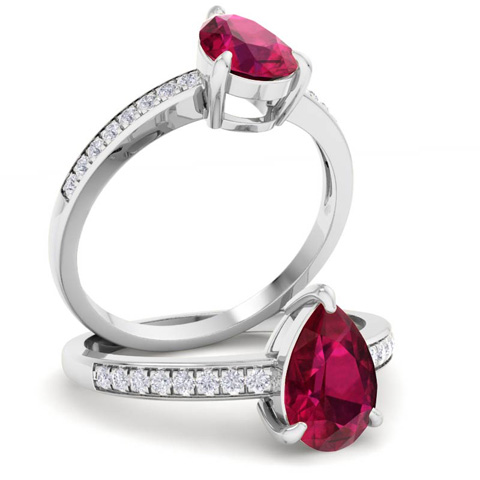 1 1/4 Carat Pear Shape Ruby and Diamond Ring In 14K White Gold