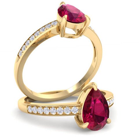 1 1/4 Carat Pear Shape Ruby and Diamond Ring In 14K Yellow Gold