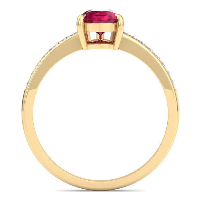 Retrograde Birthstones™ 1 1/4 Carat Pear Shape Ruby and Diamond Ring In 14K Yellow Gold