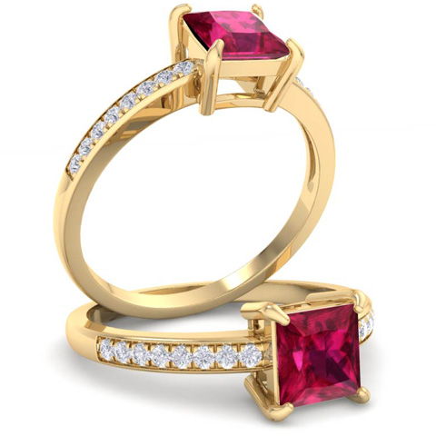 1 1/4 Carat Princess Cut Ruby and Diamond Ring In 14K Yellow Gold