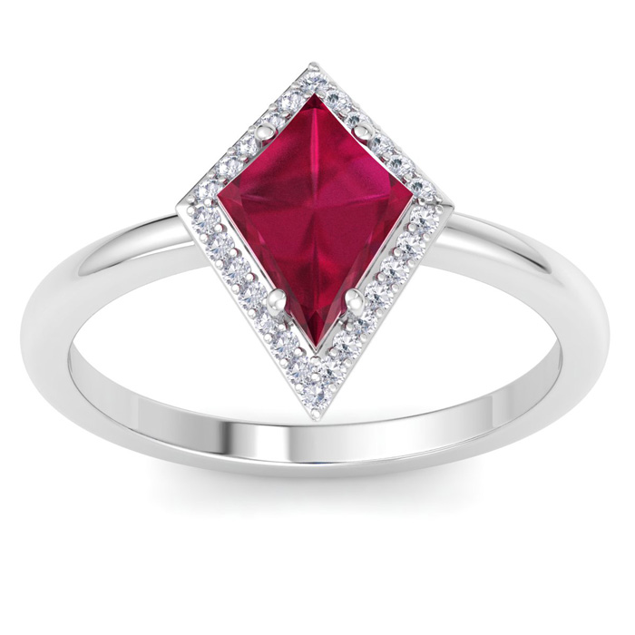 Retrograde Birthstones™ 1 3/4 Carat Kite Shape Ruby and Diamond Ring In 14K White Gold