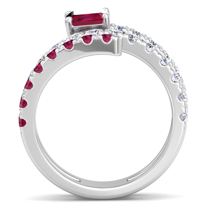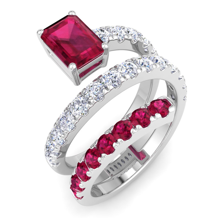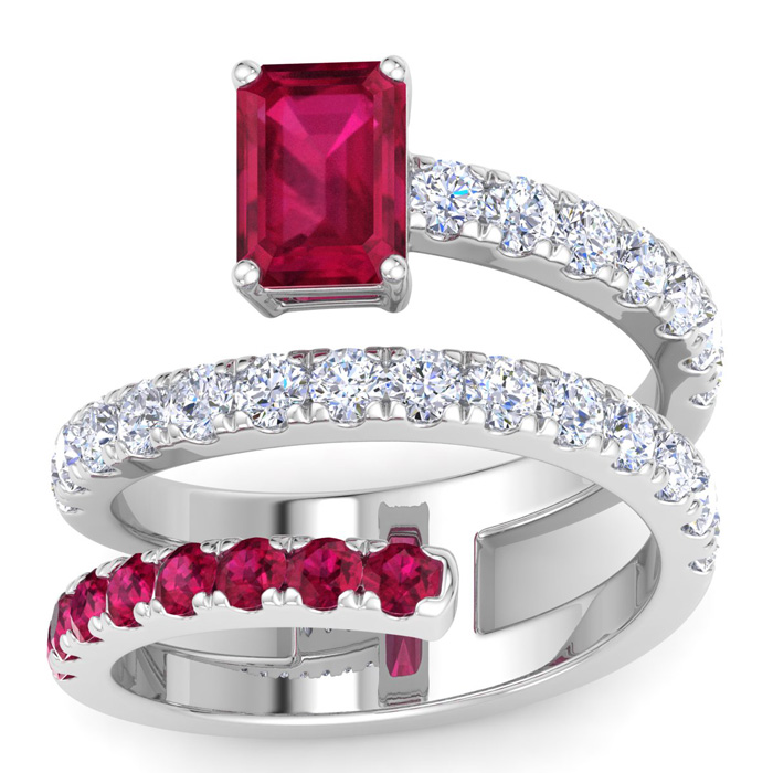 1 3/4 Carat Lab Grown Diamond and Ruby Wrap Ring In 14 Karat White Gold