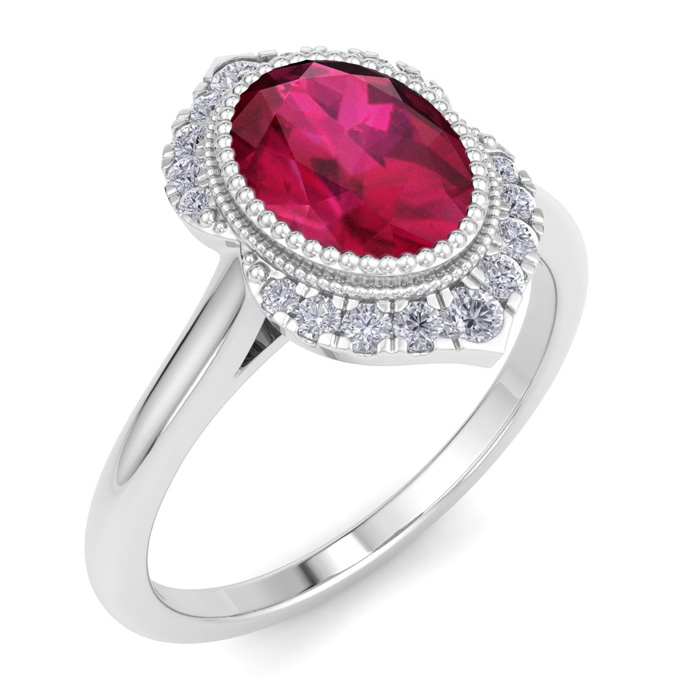 Retrograde Birthstones™ 1 3/4 Carat Oval Shape Ruby and Diamond Ring In 14K White Gold