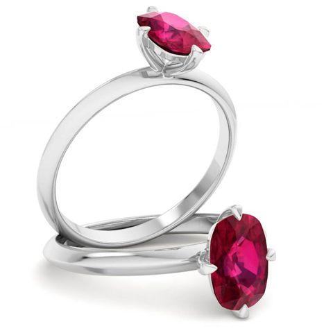 1 Carat Antique Cushion Shape Ruby Ring In 14K White Gold