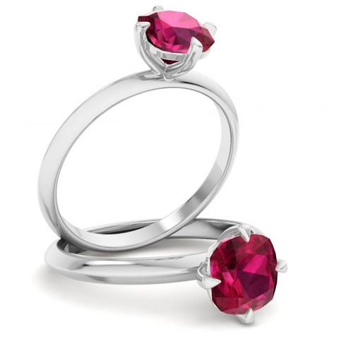 1 Carat Cushion Shape Ruby Ring In 14K White Gold