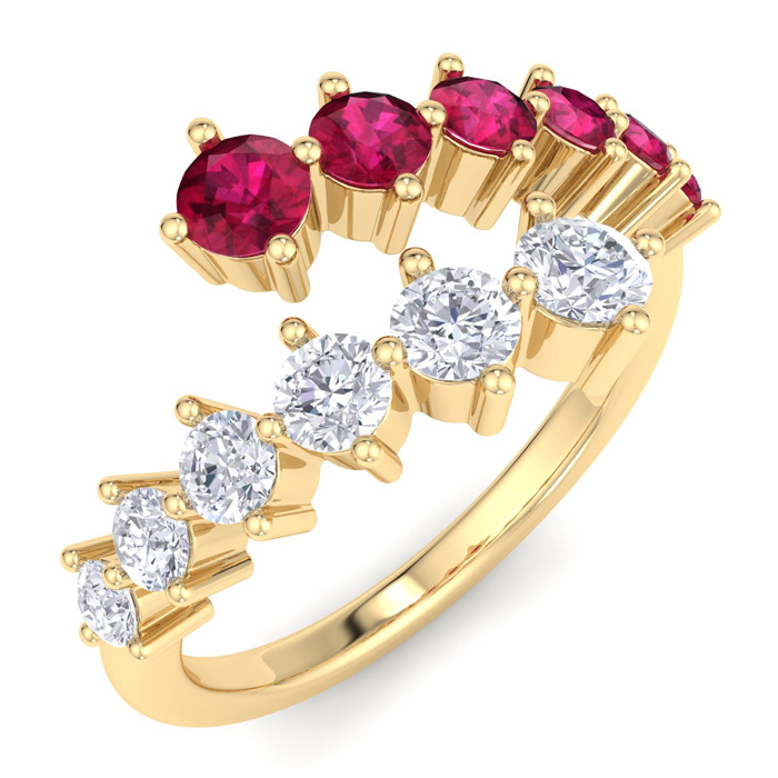 1 Carat Diamond and Ruby Wrap Ring In 14 Karat Yellow Gold