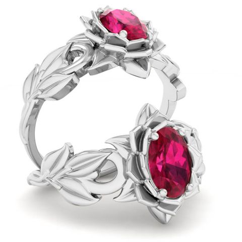 1 Carat Oval Shape Ruby Ornate Ring In 14K White Gold