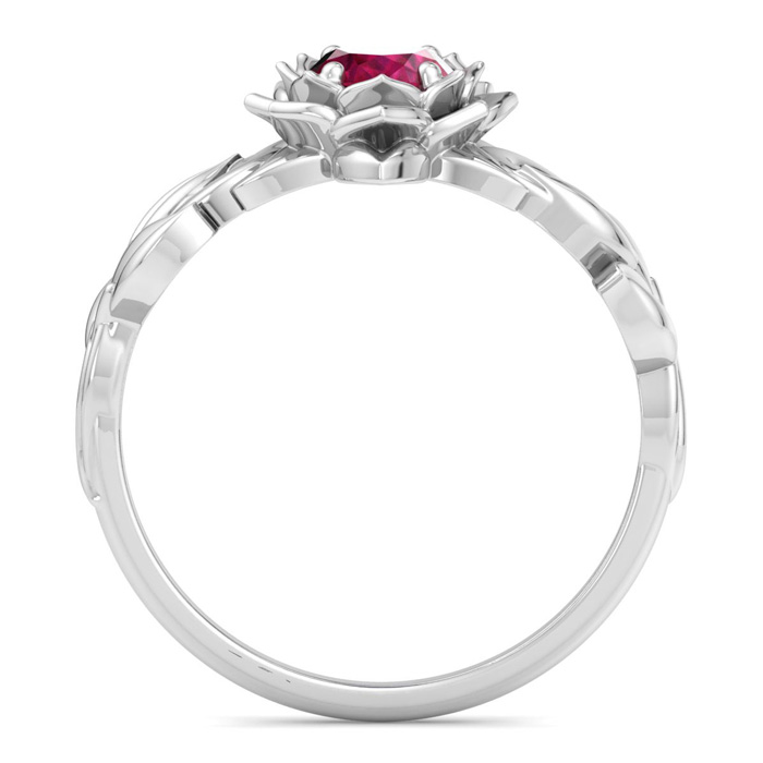 This gemstone ring features one 7x5mm oval shape ruby gemstone weighing approximately 1 carat. This ring is in 14 karat white gold. *Retrograde Birthstones™ flips the idea of traditional birthstones. Wear your ½ birthday birthstone, your Retrograde Birthstone, “The Birthstone For Your Bad Side™.