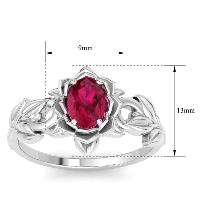 Retrograde Birthstones™ 1 Carat Oval Shape Ruby Ornate Ring In 14K White Gold