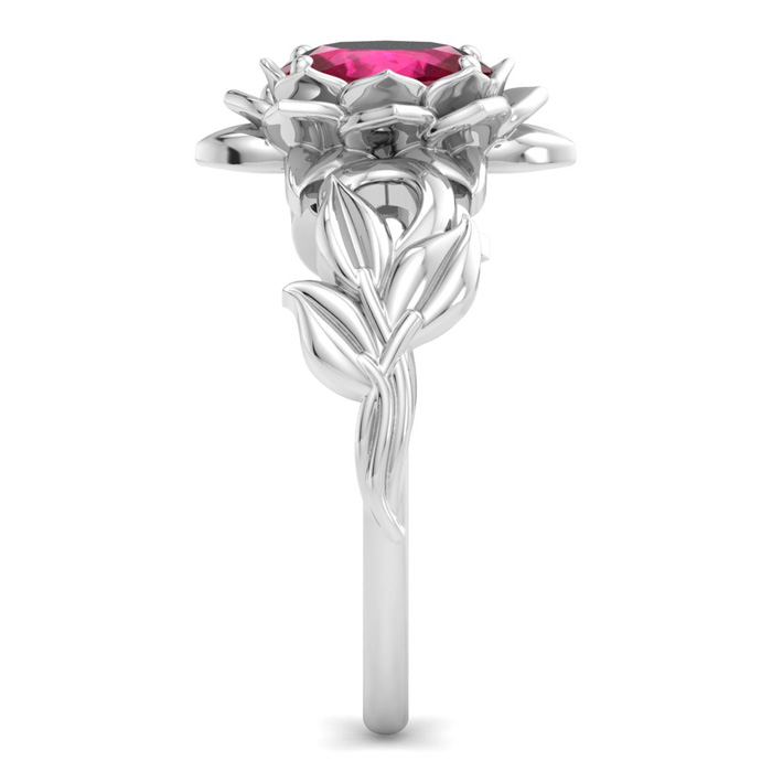 Retrograde Birthstones™ 1 Carat Oval Shape Ruby Ornate Ring In 14K White Gold
