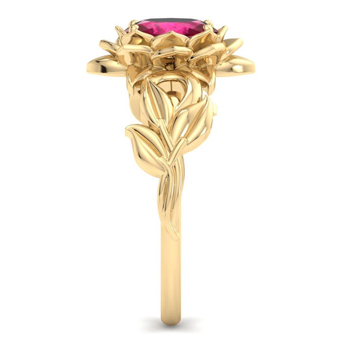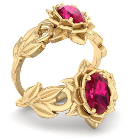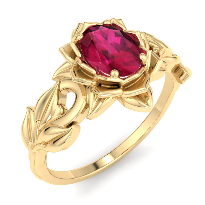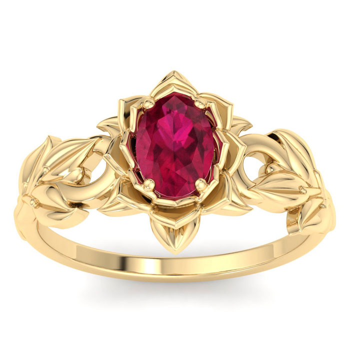 1 Carat Oval Shape Ruby Ornate Ring In 14K Yellow Gold