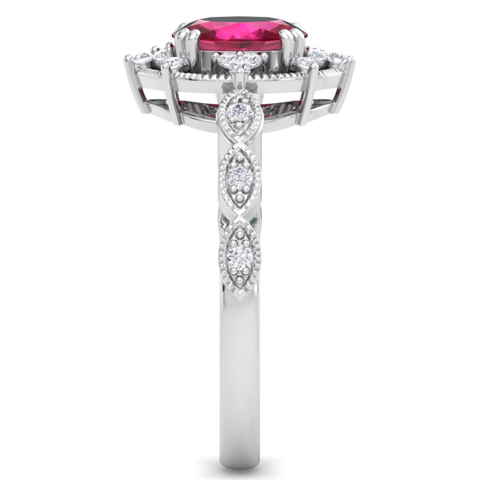 1 Carat Ruby and Halo Diamond Ring In 14K White Gold