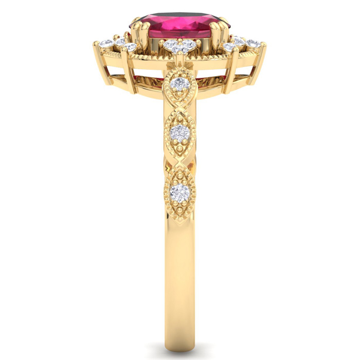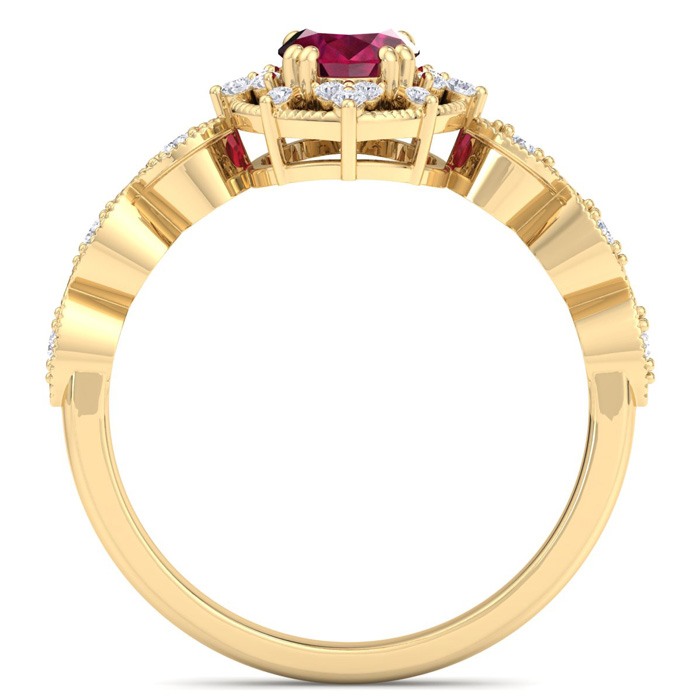 Retrograde Birthstones™ 1 Carat Ruby and Halo Diamond Ring In 14K Yellow Gold