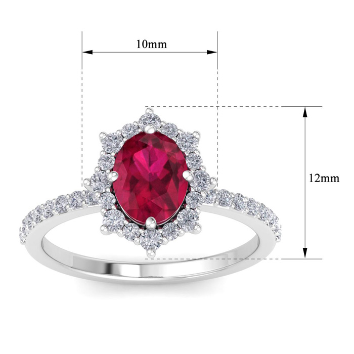 Retrograde Birthstones™ 2 Carat Oval Shape Ruby and Diamond Ring In 14K White Gold