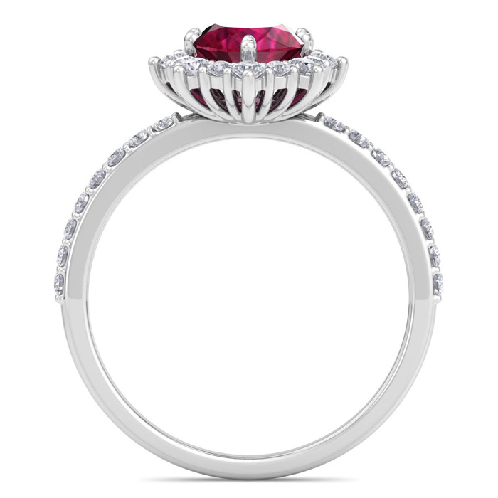 Retrograde Birthstones™ 2 Carat Oval Shape Ruby and Diamond Ring In 14K White Gold
