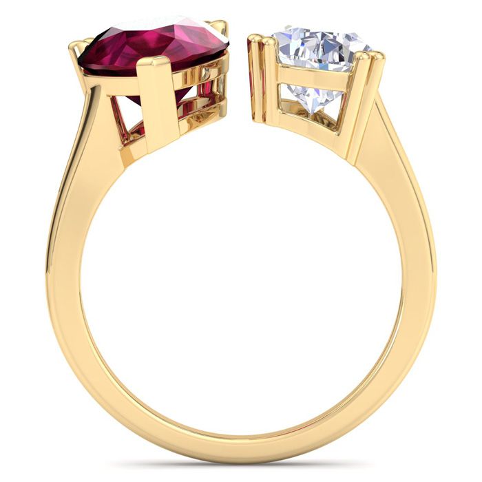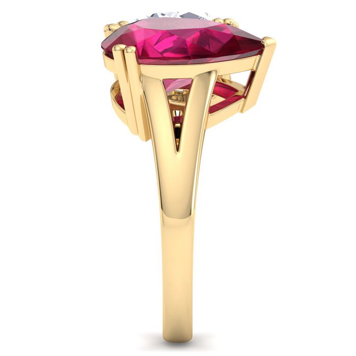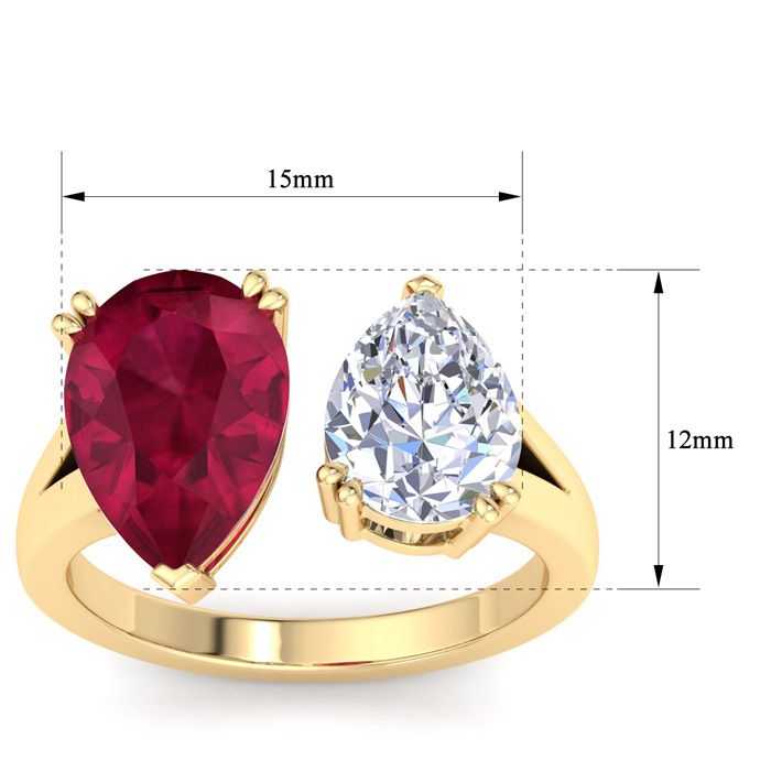 4 3/4 Carat Ruby and Lab Grown Diamond Two Stone Engagement Ring In 14 Karat Yellow Gold, Pear