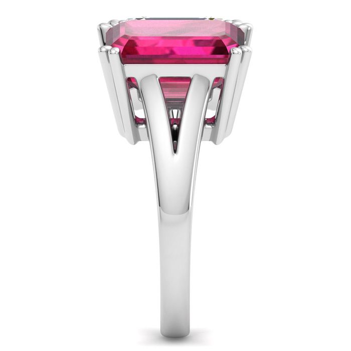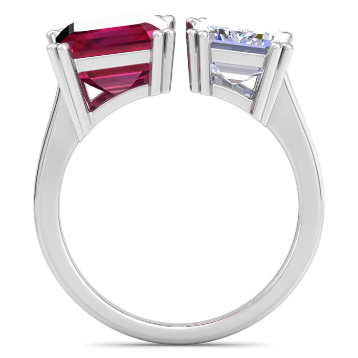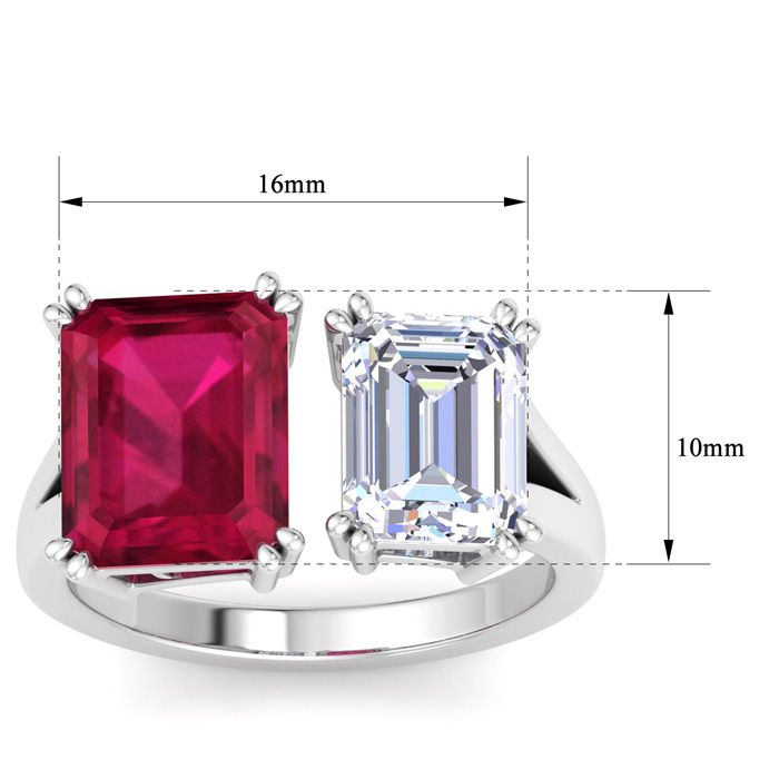 6 Carat Ruby and Lab Grown Diamond Two Stone Engagement Ring In 14 Karat White Gold, Emerald