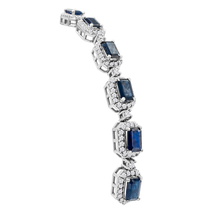 4 Carat Sapphire Bracelet With Diamonds In 14 Karat White Gold, Adjustable 6-9 Inches